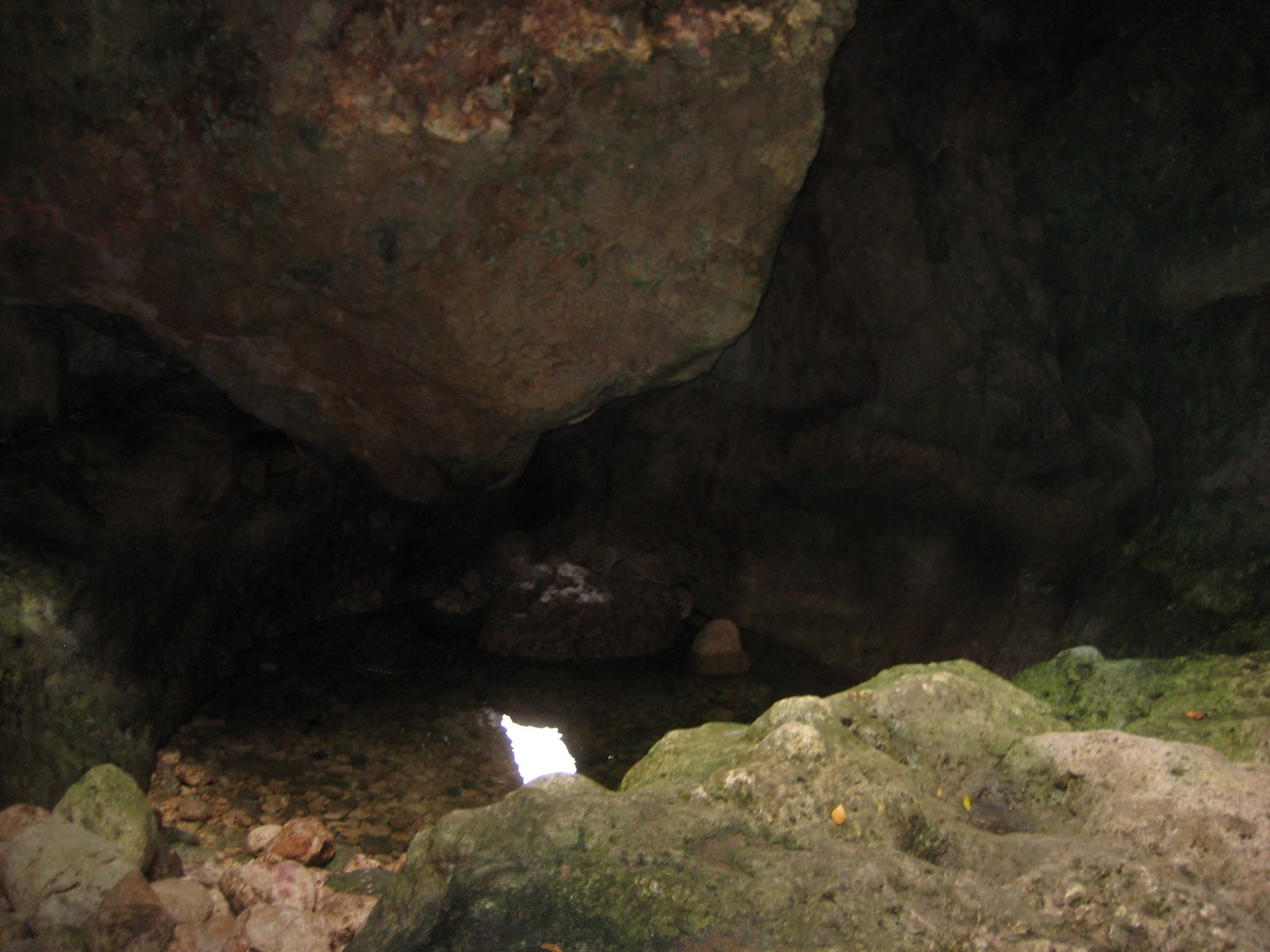 Right after taking this picture, I walked over to see if Crissy and Kate needed help lowering down through the hole into the cave area. At that point, I heard a loud, terrifying yell that echoed across the cave walls. I turned around to find our guide Harry laying on his back on the pile of rocks in the front left of this photo. He was screaming in pain with his eyes closed. At first I had the horrifying thought that he'd hurt his back. When he told me it was his knee instead, I at first wasn't sure whether that was any better, as the long, steep hike back up flashed across my mind. At this point, we were all a bit dumbstruck as to what to do. Here was this big 6-foot plus 200-plus pound guy who inured his knee at the absolute farthest point away from our transportation, cell phone and first aid kit--and only us three weakling girls and a couple backpacks of snacks and water there to help him.